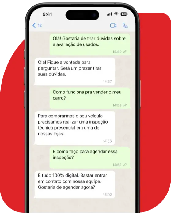 No nosso fluxo de avaliação online você poderá agendar um dia e horário para fazer a inspeção do seu veículo, sem qualquer dificuldade, tudo 100% online. Após confirmar seu agendamento, entraremos em contato com você para te contar os próximos passos :)